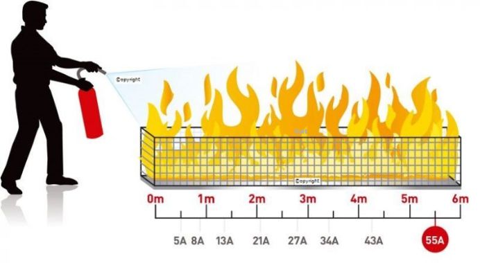 - 5A: brandblusser auto om tot 0.50 meter vaste stof beginbrand te blussen.